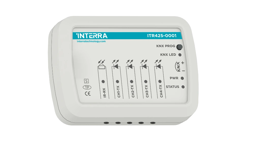 Interra KNX-IR Gatweway is a multifunctional IR signal transmitter. It allows you to manage all infrared electronic devices such as TV, DVD, air conditioner. There are five different modes in total: single mode, repeat mode, sequential mode, climate control and current sensing. Interra IR Transmitter has a maximum of 150 universal IR codes and 81 AC IR codes. It has 4 spreading interfaces: A, B, C, D. Interra IR Gateway is produced in accordance with the EU standard in terms of EMC and electrical safety compatibility.